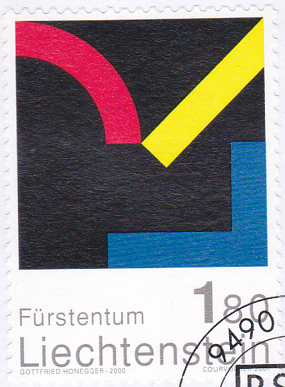 Gottfried Honegger (geb. 12. Juni 1917 in Zürich; gest 17. Jan. 2016 in Zürich) war ein Schweizer Grafiker, Maler und Plastiker. Aus Liechtenstein kommt diese Marke (MiNr 1281) mit dem Gemälde "Q (Quadrat)" von Gottfried Honegger.