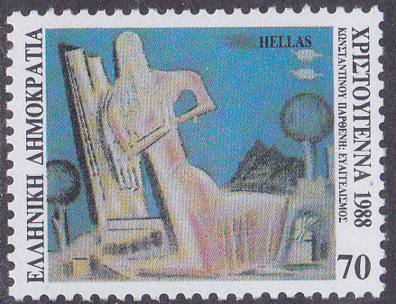 Auf einer Weihnachtsmarke 1988 (MiNr 1714 A) sehen wir "Mariä Verkündigung" nach einem Gemälde von Kostas Parthenis.