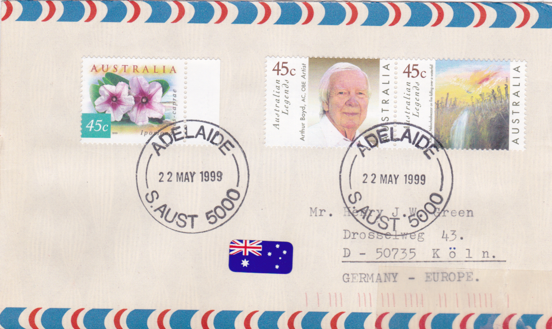 Aus Australien kommt diese Marke (MiNr 1786 I) mit einem Porträt von Arthur Boyd.