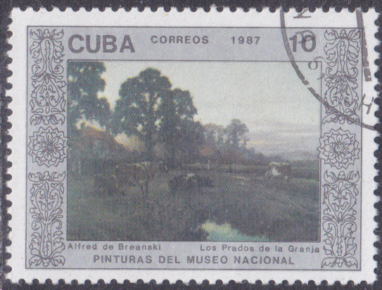 Diese Marke aus Kuba (MiNr 3075 zeigt das Gemälde "Bauernhof" von Alfred de Breanski.