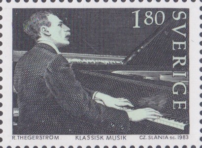 Aus Schweden kommt diese Marke (MiNr 1253) mit Wilhelm Stenhammar (1871-1927; Komponist) nach einem Gemälde von Robert Thegerström.