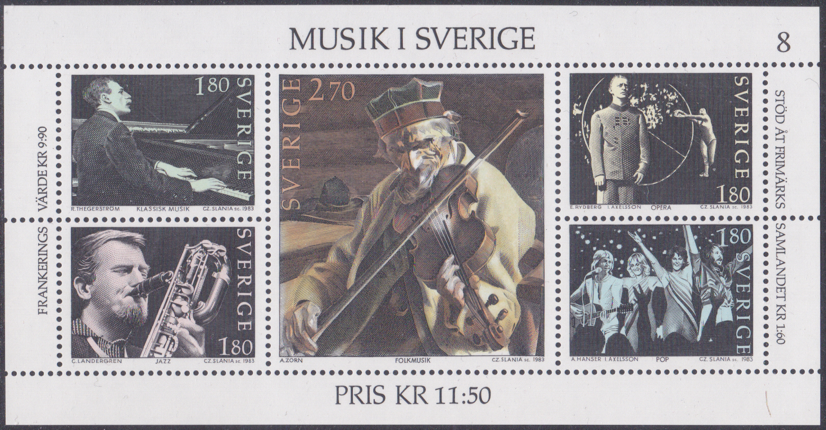 Diese Marke wurde zusammen mit vier weiteren Marken in einem Block (MiNr Block 11) "Musik in Schweden – Repräsentanten verschiedener Musikrichtungen" verausgabt.