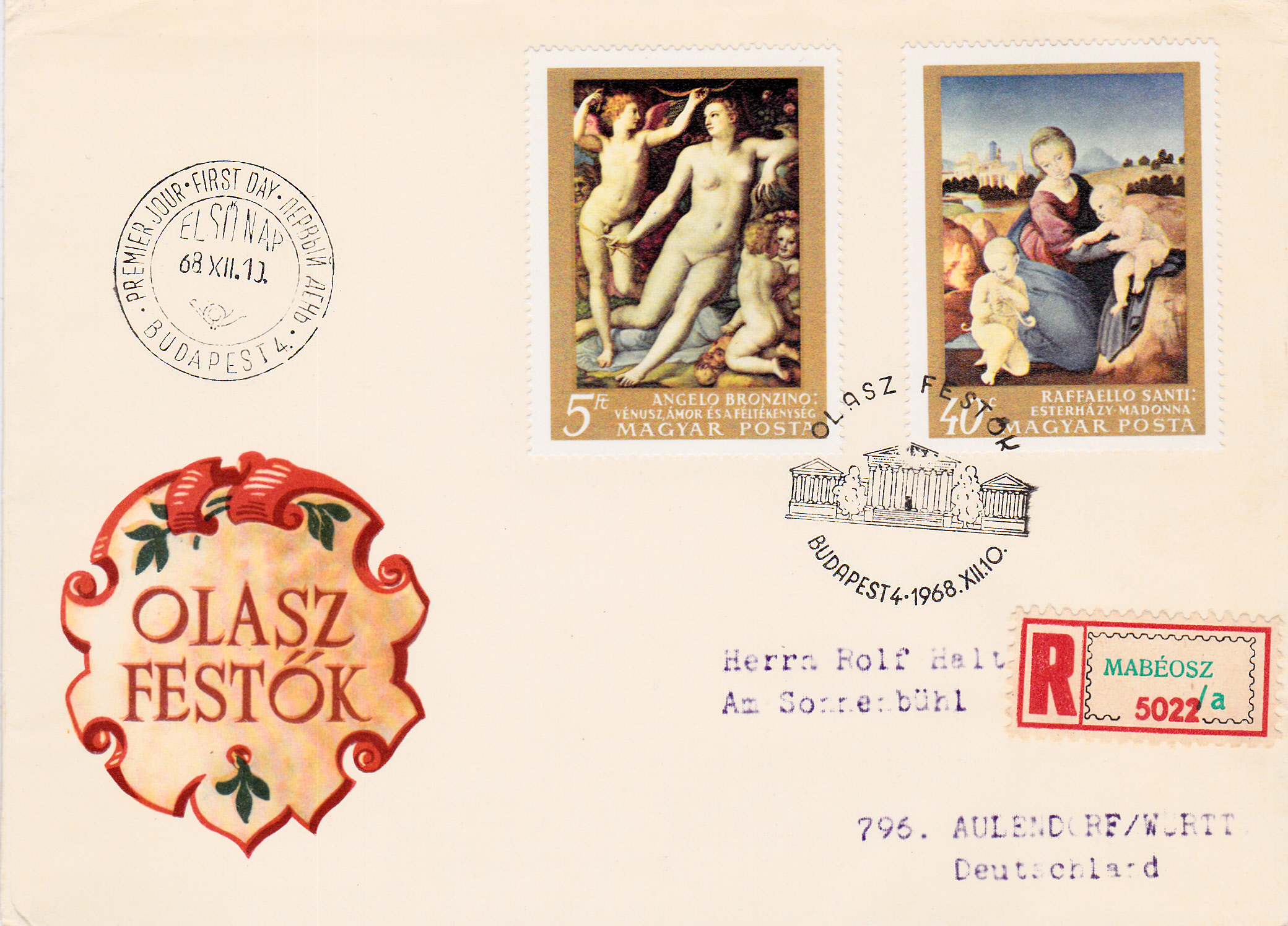 1968 erschien in der ungarischen Serie "Gemälde italienischer Meister" auch eine Marke (MiNr 2465 A) mit dem Gemälde "Madonna Esterhazy" von Raffael. Die Marke gibt es auch geschnitten.