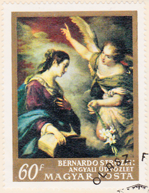 1968 erschien in der ungarischen Serie "Gemälde italienischer Meister" auch eine Marke (MiNr 2466 A) mit dem Gemälde "Die Verkündung Mariä" von Bernardo Strozzi. Die Marke gibt es auch geschnitten.