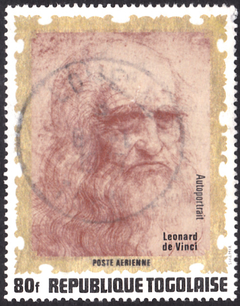 Diese Marke aus Togo (MiNr 948 A) zeigt das bereits auf der Marke aus Zypern vorgestellt Selbstporträt von Leonardo da Vinci.