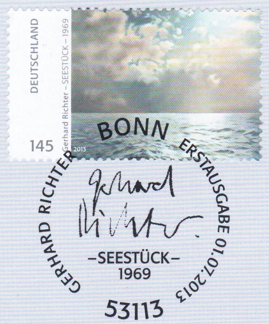 2013 erschien bei der Deutschen Post eine Marke mit der Abbildung des Gemälde "Seestück" von Gerhard Richter. Hier eine