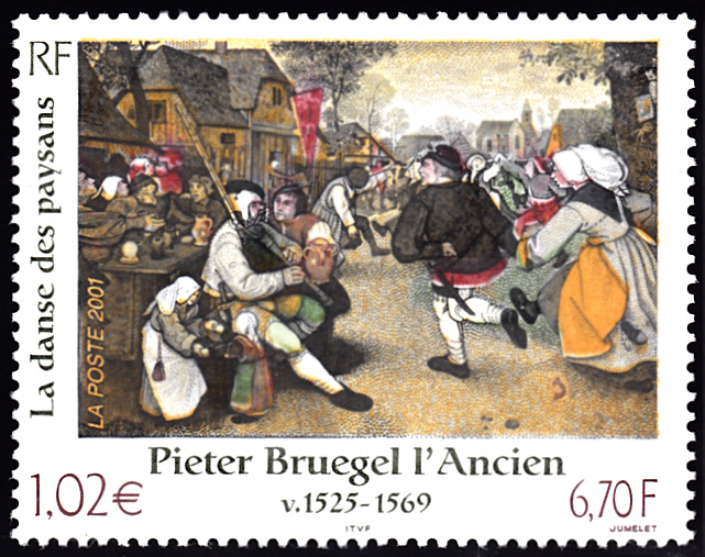 Aus Frankreich kommt diese Marke (MiNr 3507) mit dem Gemälde "Bauerntanz" von Pieter Bruegel d. Ä.