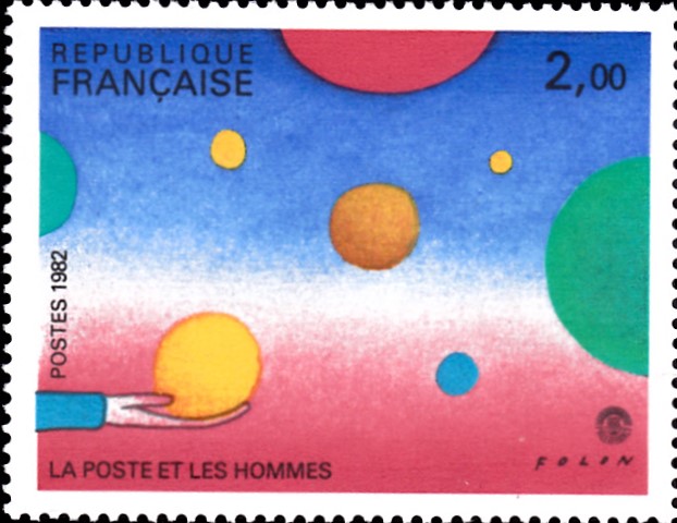 In Frankreich ist zur Internationalen Briefmarkenausstellung PHILEXFRANCE ’82 in Paris diese Marke (MiNr 2321) mit der Grafik "Die Post und die Menschheit" von Jean-Michel Folon erschienen.