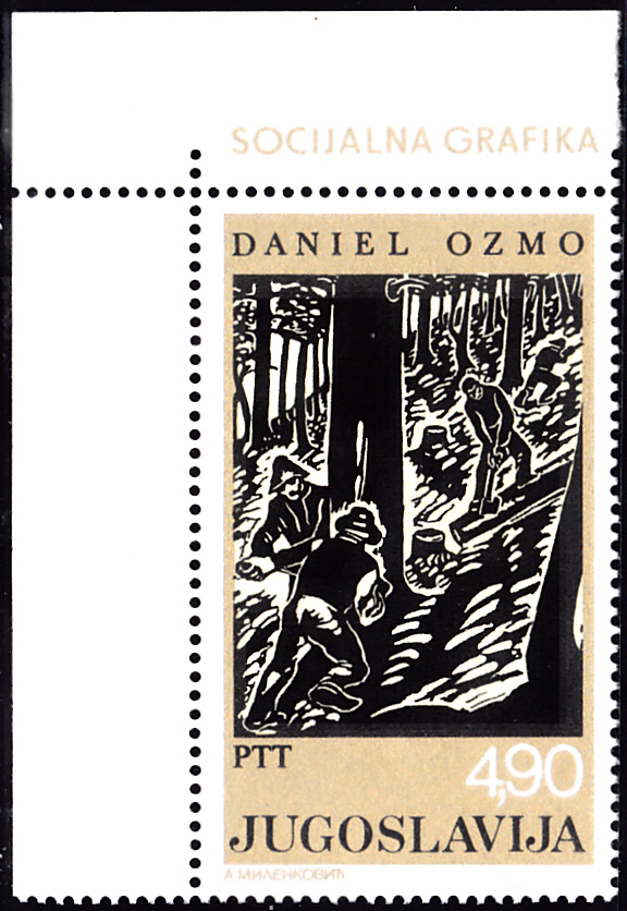 In der Serie "Soziale Grafiken" ist in Jugoslawien diese Marke (MiNr 1760) wird die Grafik "Holzfällen" von Daniel Ozmo gezeigt.