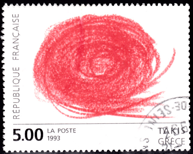 Auf einer Marke aus Frankreich (MiNr 2981) wird eine Graphik von Takis gezeigt.