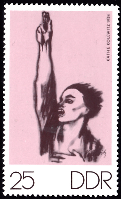 Auch in der DDR wurde das Motiv "Nie wieder Krieg" nach dem Plakat von Käthe Kollwitz für den mitteldeutschen Jugendtag 1924 in Leipzig auf einer Marken gezeigt (MiNr 1609).