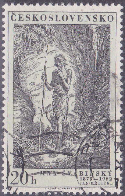 Zum 100. Geburtstag von Maximilián Švabinský ist diese Marke (MiNr 2160) mit "Johannes der Täufer" nach einem Holzschnitt von Max Švabinský erschienen.