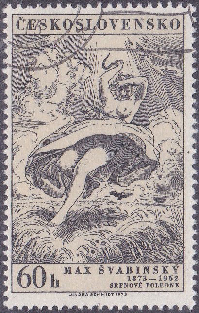 Zum 100. Geburtstag von Maximilián Švabinský ist diese Marke (MiNr 2160) mit "Johannes der Täufer" nach einem Holzschnitt von Max Švabinský erschienen.