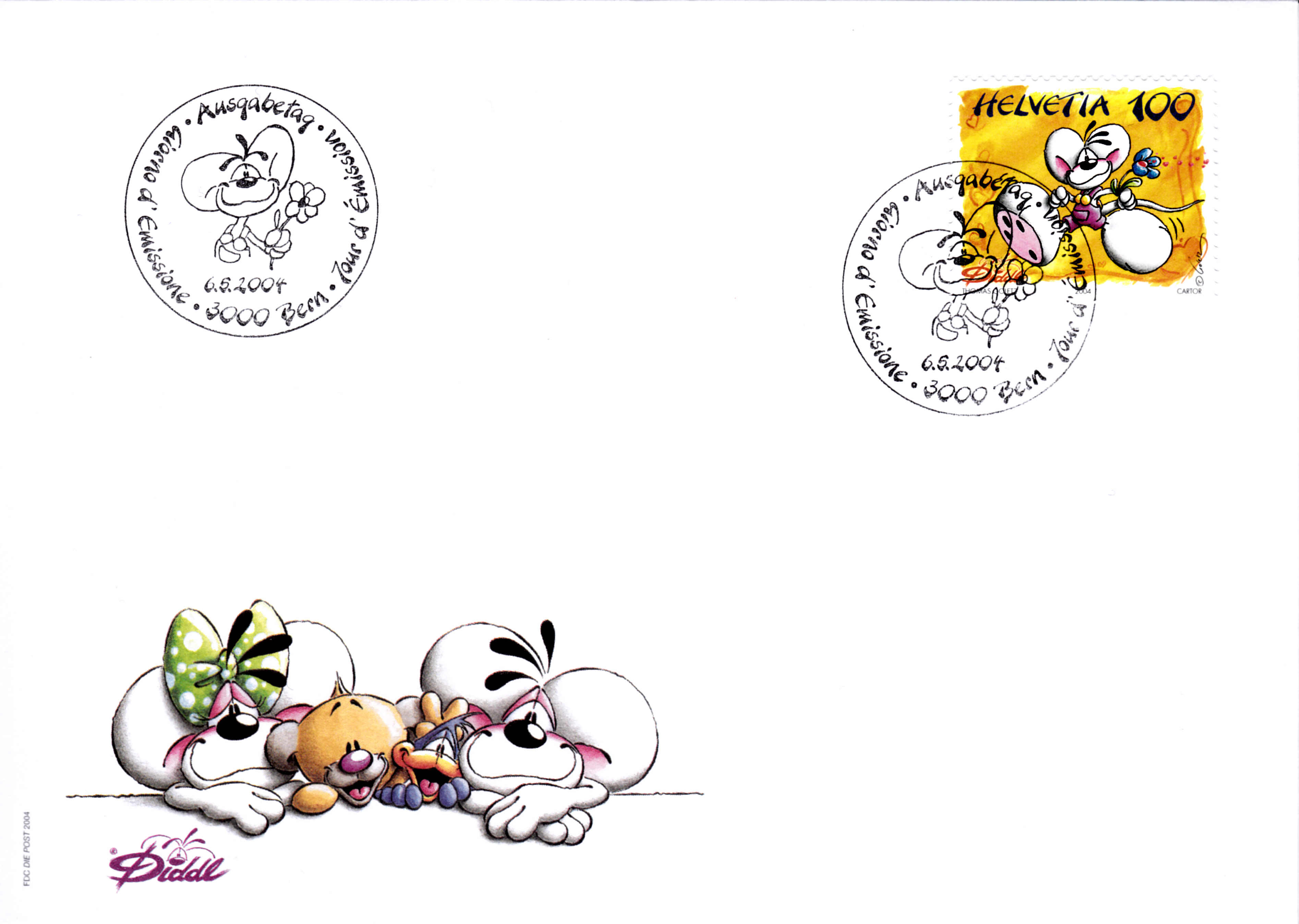 FDC der Schweizer Post mit der "Diddle-Maus"-Marke (MiNr 1851).