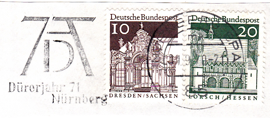 Maschinenwerbestempel aus Nürnberg BPA vom 11.9.1970 mit Werbung für das Dürerjahr 1971 (500. Geburtstag von Albrecht Dürer).