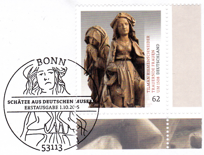 Am 1.10.2015 erschien bei der Deutschen Post eine Marke "Schätze aus deutschen Museen" (MiNr 3180) mit der Holzskulptur "Trauernde Frauen" von Tilman Riemenschneider. Die Skulptur befindet sich heute im Landesmuseum Württemberg in Stuttgart.