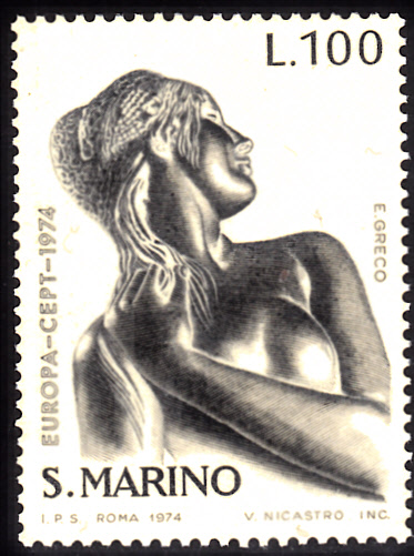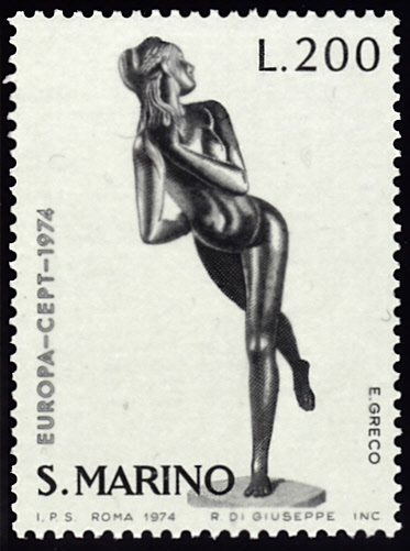 Auf der Europamarke 1974 zu 200 Lire aus San Marino (MiNr 1068) wird die Statue "Weiblicher Körper" von Emilio Greco gezeigt.