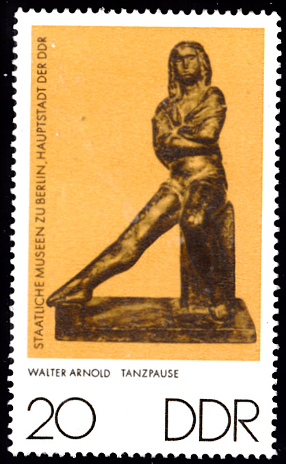 Auf dieser Marke aus der DDR (MiNr 2142) sehen wir die Bronzeplastik "Tanzpause" von Walter Arnold.