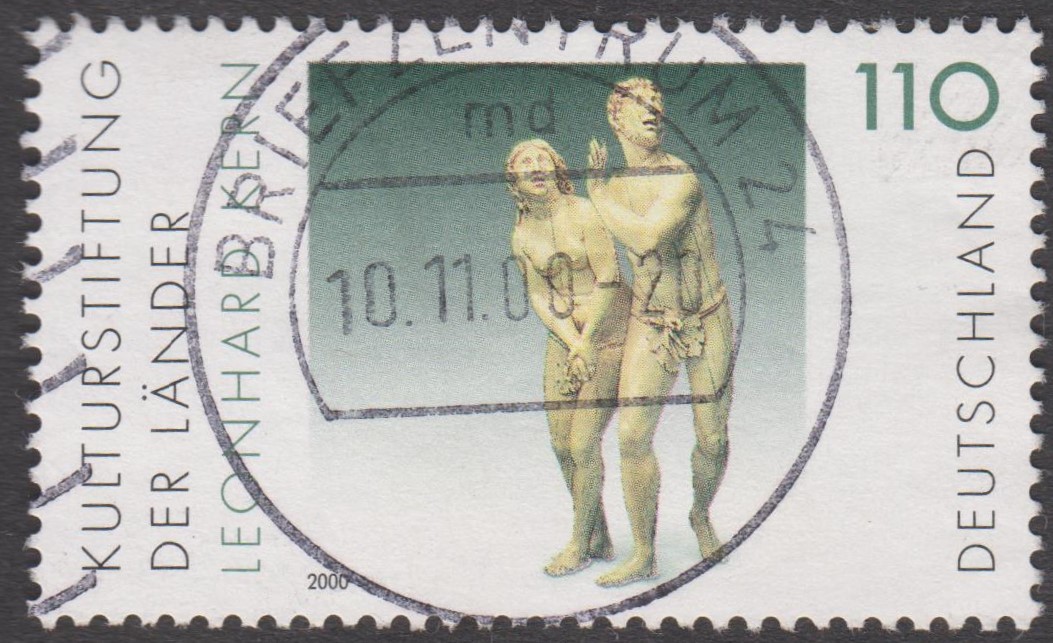 Bund MiNr. 2107 zeigt die Elfenbeinskulptur "Die Vertreibung aus dem Paradies", hier auf ETB 18/2000: