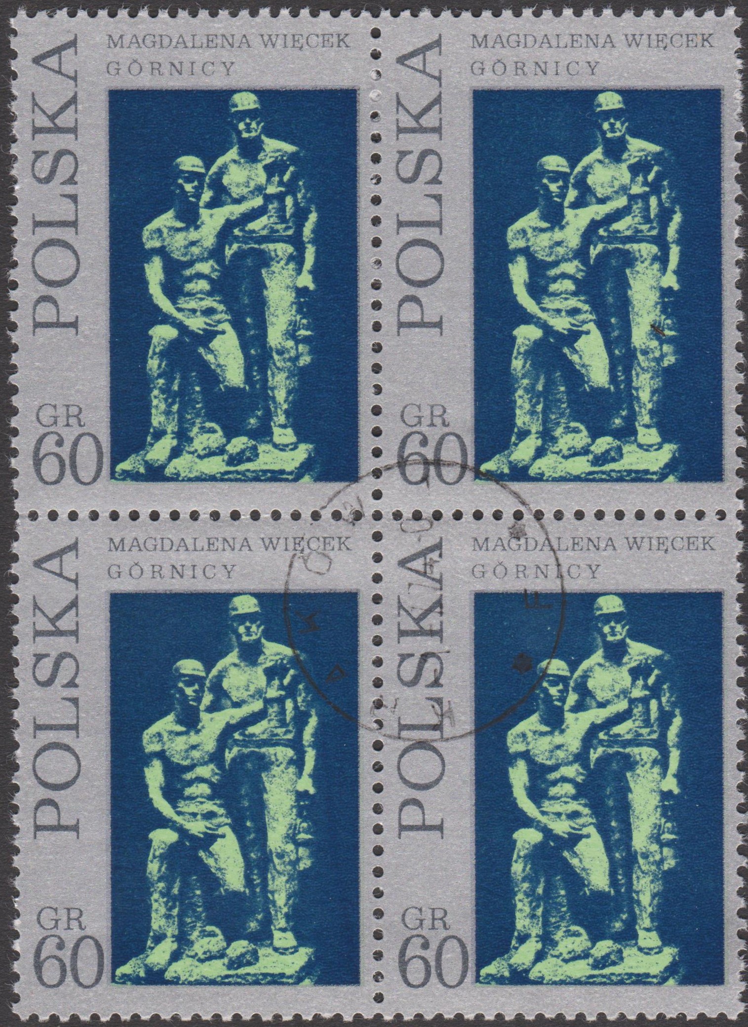 Polen MiNr. 2099 zeigt die Skulptur "Bergarbeiter", hier als Viererblock: