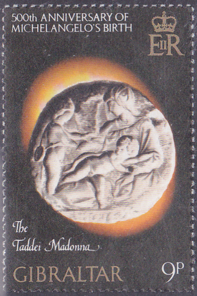 In Gibraltar ist zum 500. Geburtstag von Michelangelo Buonarroti diese Marke (MiNr 334 A) mit der Madonna von Brügge, einer Marmorskulptur von Michelangelo Buonarroti, erschienen.