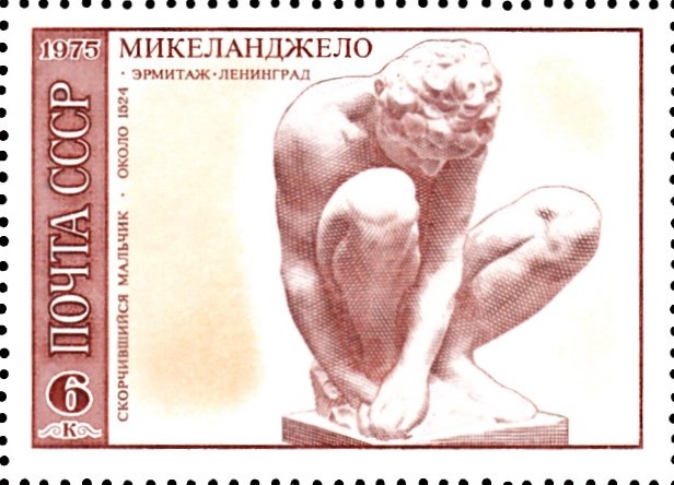 Zum 500. Geburtstag von Michelangelo ist in einer Serien in der Sowjetunion diese Marke (MiNr 4329) mit der Skulptur "David" und dem Detail des Kopfes von David erschienen.