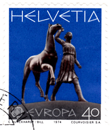 Auf der Europamarke 1974 zu 40 Rappen aus der Schweiz (MiNr 1030) wird diese Figur gezeigt.