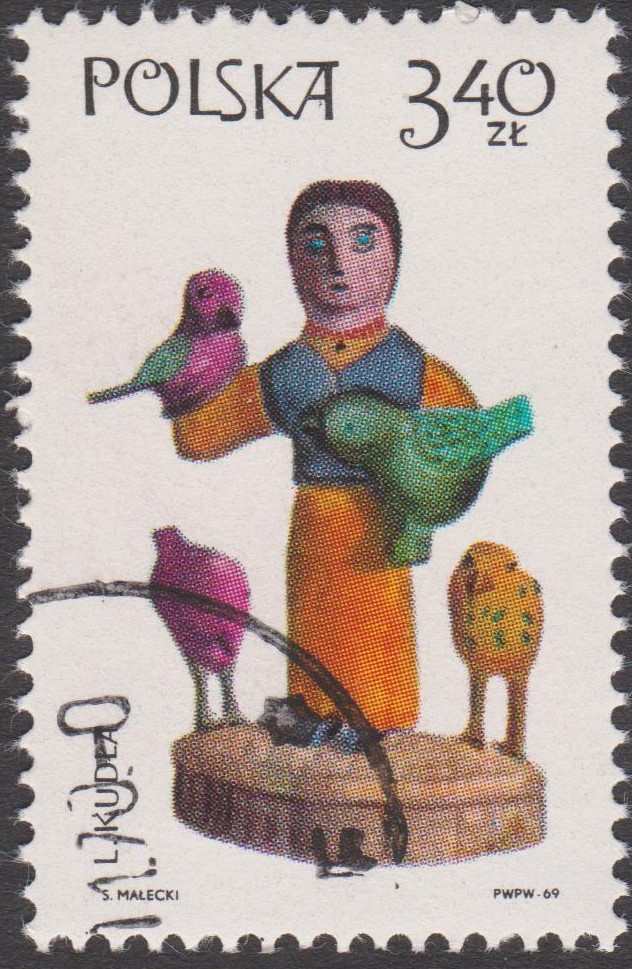 Polen MiNr. 1976 zeigt das Werk "Mädchen mit Vögeln" von Leon Kudła: