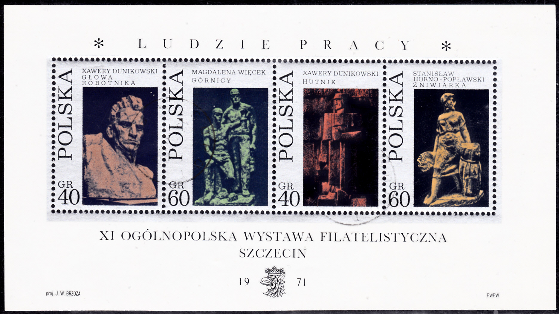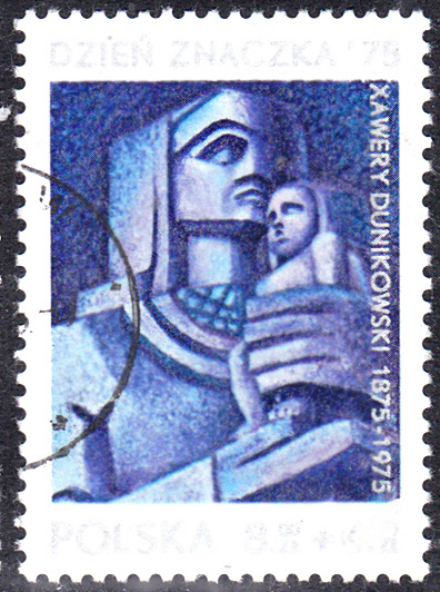 Zum Tag der Briefmarke 1975 sind in Polen in einer Serie Marken mit Werke von Xawery Dunikowski (1875-1964, Bildhauer) erschienen. Auf dieser Marke (MiNr 2409) ist ein "Selbstporträt" von Xawery Dunikowski aus dem Zyklus "Wawel-Köpfe" abgebildet.