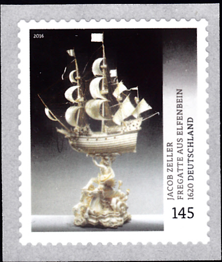 In der Serie "Schätze aus deutschen Museen" hat die Deutsche Post eine Marke (MiNr 3228) mit der Großen Fregatte aus Elfenbein von Jacob Zeller verausgabt.