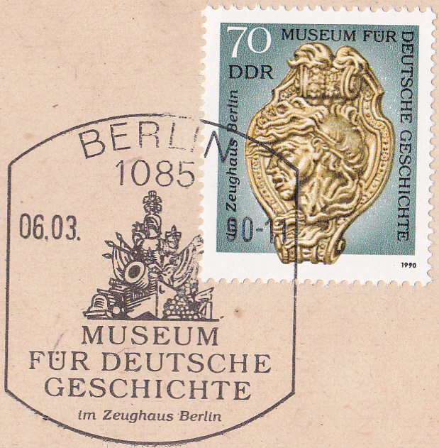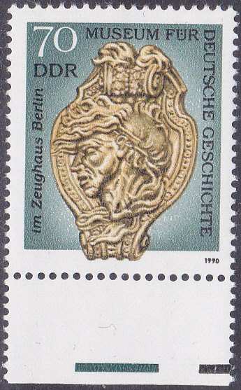 Auf der Marke zu 40 Pf (MiNr 3318) zum Thema "Museum für Deutsche Geschichte im Zeughaus Berlin" wird einer der 22 Köpfe sterbender Krieger in den Schlusssteinen der Rundbogenfenster im Erdgeschoss des Berliner Zeughauses von Andreas Schlüter abgebildet.