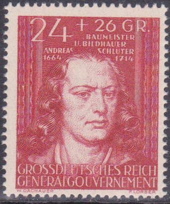 Eine Marke Generalgouvernement MiNr 121 zeigt ein Porträt von Andreas Schlüter.