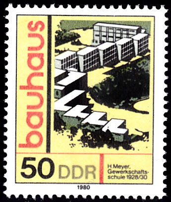 Eine weitere Marke im Wert von 50Pf (MiNr 2512) bildet die Gewerkschaftsschule in Bernau (1928 bis 1930) des Architekten Hannes Meyer (1889-1954) ab.
