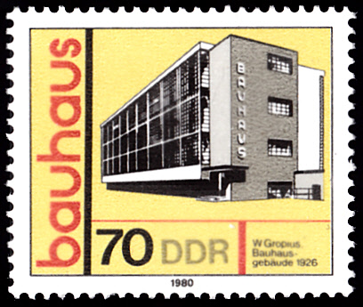 Die letzte Marke dieser Serie der DDR zeigt wie die Marke der Deutschen Post vom 4.4.2019 das Bauhaus-Gebäude in Dessau (1926). Architekt für dieses Gebäude war Walter Gropius.