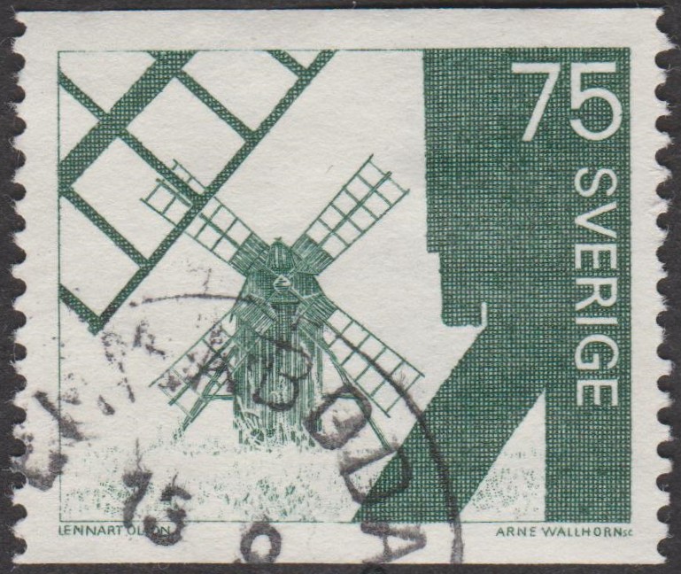 Dieses Postwertzeichen aus Schweden zeigt gleich zwei Windmühlen: