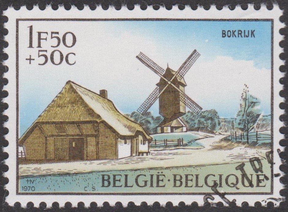 Dieses Postwertzeichen aus Belgien zeigt eine Windmühle: