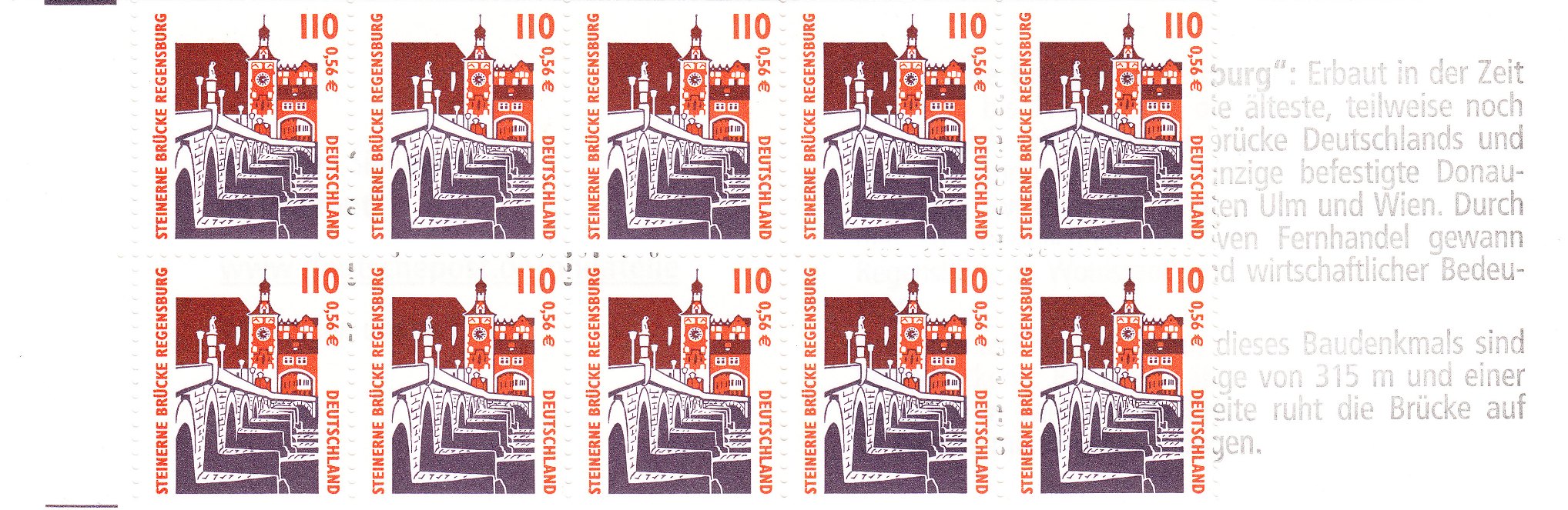 Das Markenheftchen 42 zeigt als Motiv die "Steinerne Brücke Regensburg":