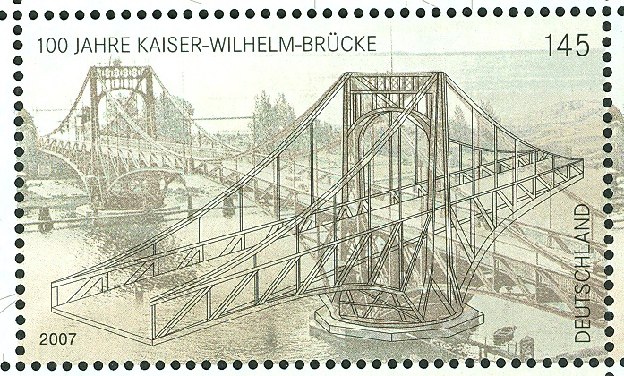 Zum 100sten Jubiläum der Kaiser-Wilhelm-Brücke brachte die Deutsche Post eine Marke (MiNr. 2616) heraus.