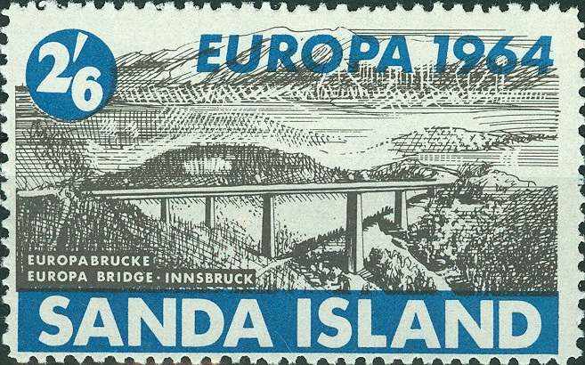 Die Europabrücke bei Innsbruck wurde ausgewählt, um 1964 auf Ausgaben der Sanda Island zu erscheinen.