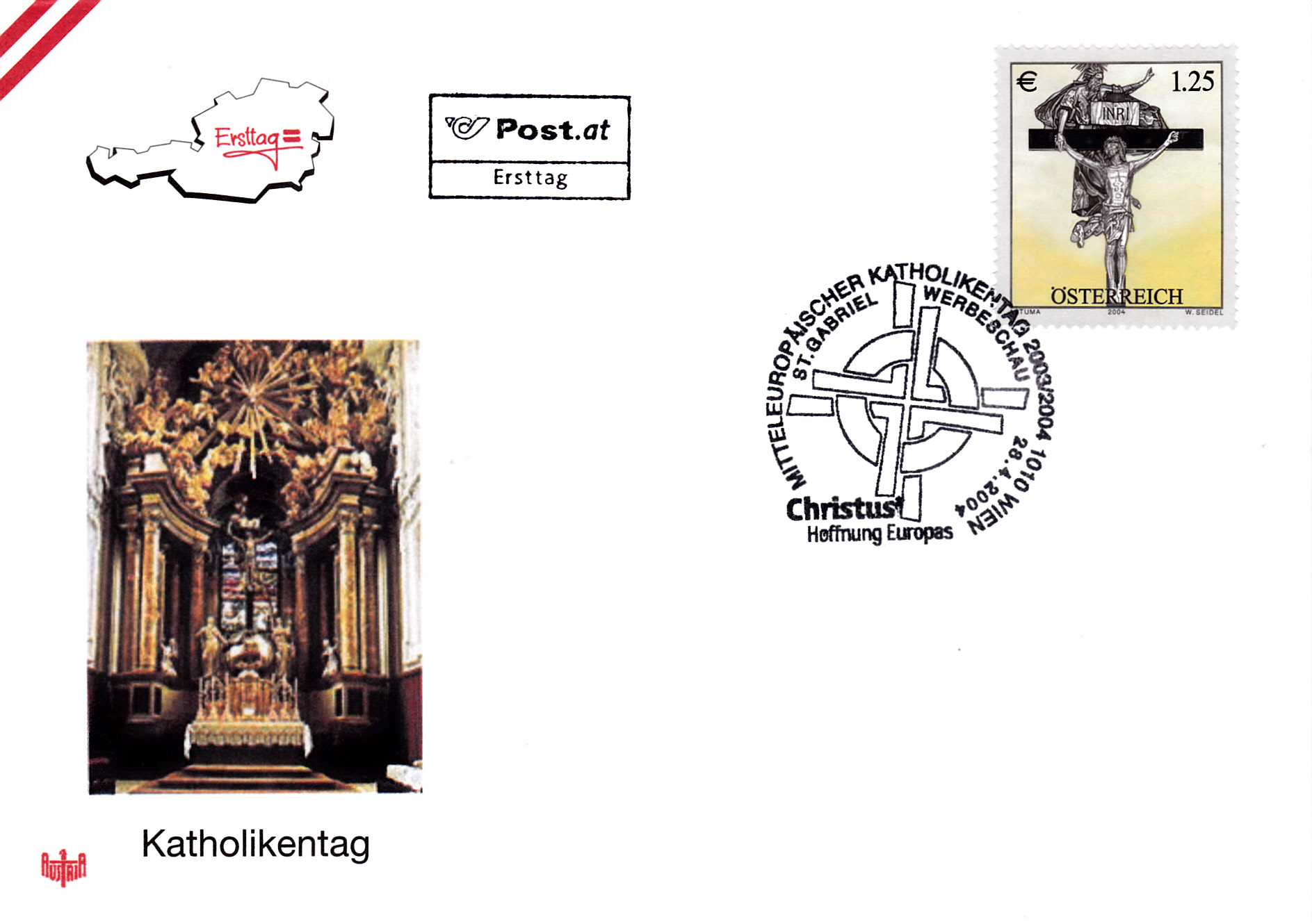 FDC der Österreichischen Post mit der Marke (MiNr 2481) mit dem Kreuz des Hochaltars in der Basilika von Mariazell von Johann Bernhard Fischer von Erlach.