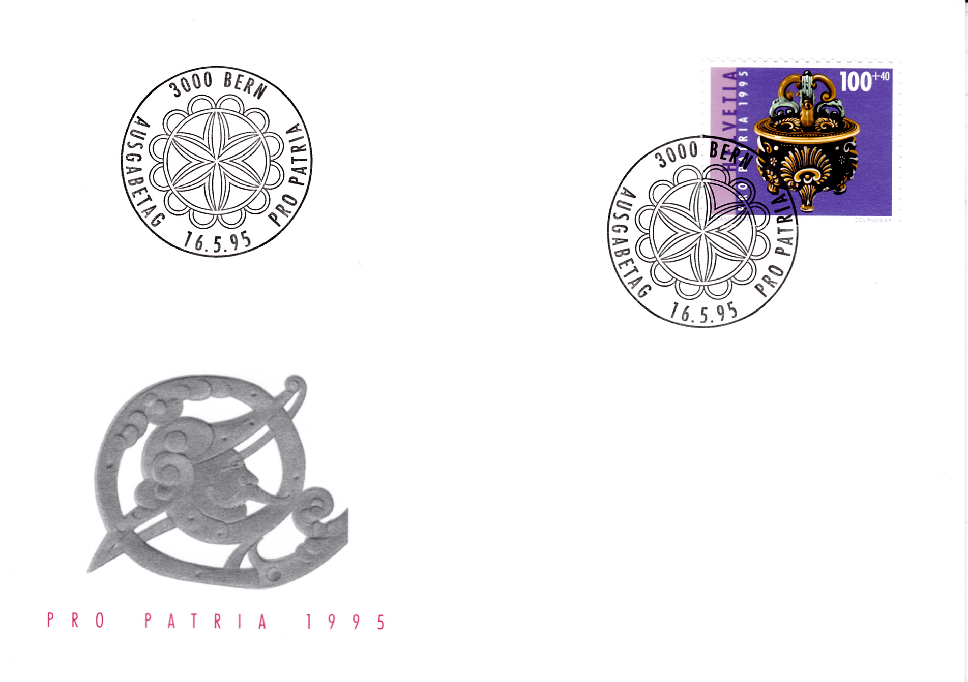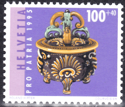 Auf dieser Marke aus der Serie "Pro Patria" 1995 wird eine Zuckerdose aus Langnauer Keramik aus dem 19. Jahrhundert gezeigt.