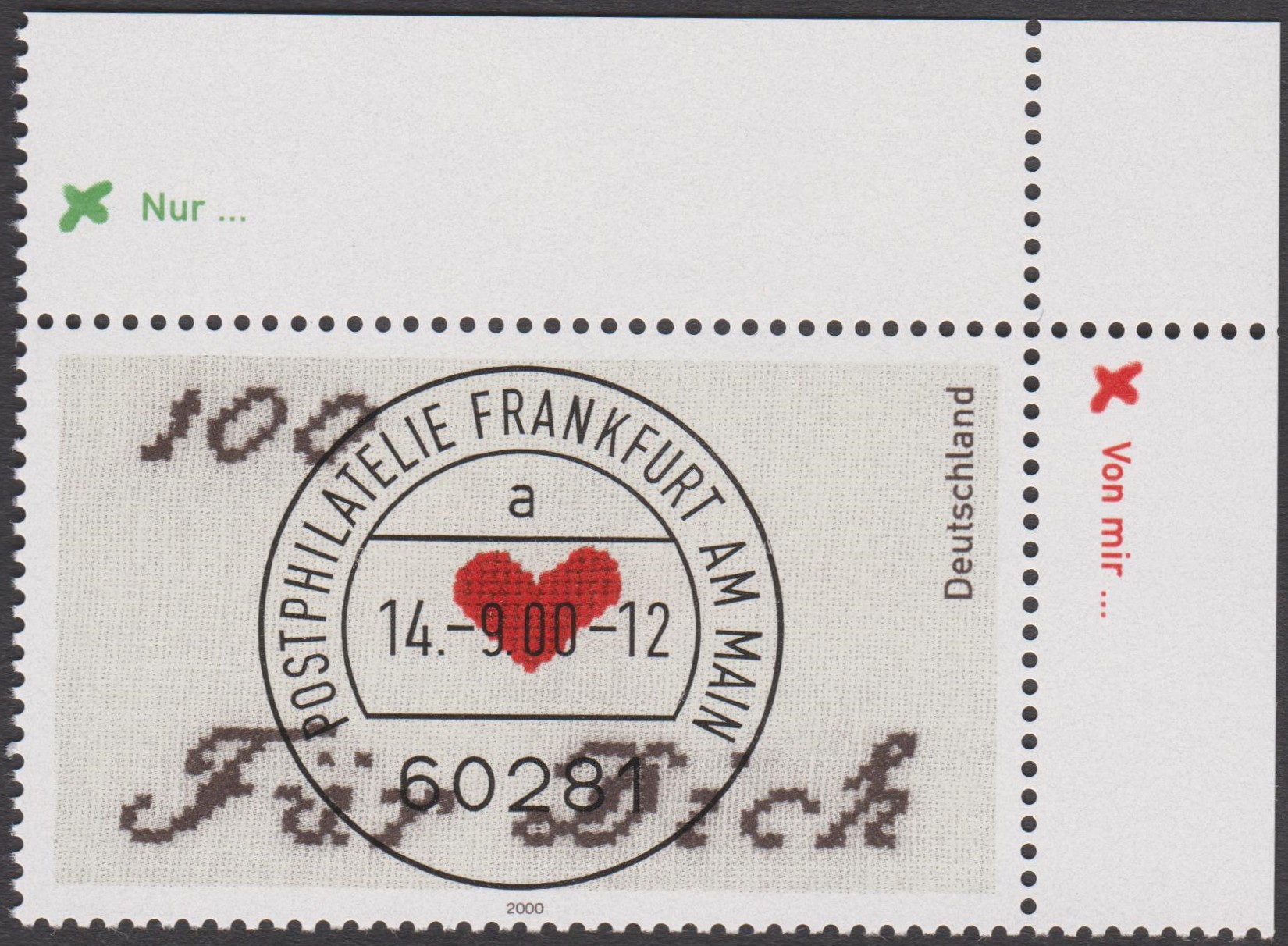Bund MiNr. 2138, Eckrand oben rechts mit EST POSTPHILATELIE FRANKFURT AM MAIN: