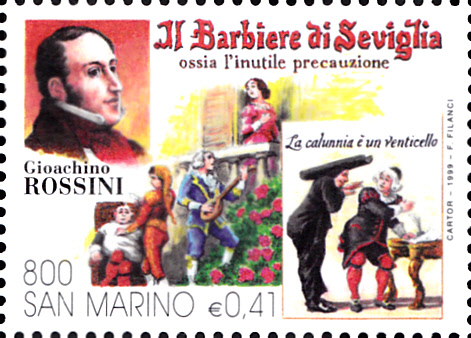 In San Marino ist in der Ausgabe "400 Jahre Oper" eine Marke (MiNr 1816) zu Ehren von Gioachino Rossini erschienen. Auf der Marke werden ein Porträt von Gioachino Rossini und eine Szene aus der Oper "Der Barbier von Sevilla" gezeigt.