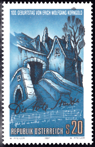 Zum 100. Geburtstag von Erich Wolfgang Korngold erschien in Österreich eine Marke (MiNr 2213) mit einem Bühnenbild zur Oper "Die tote Stadt".