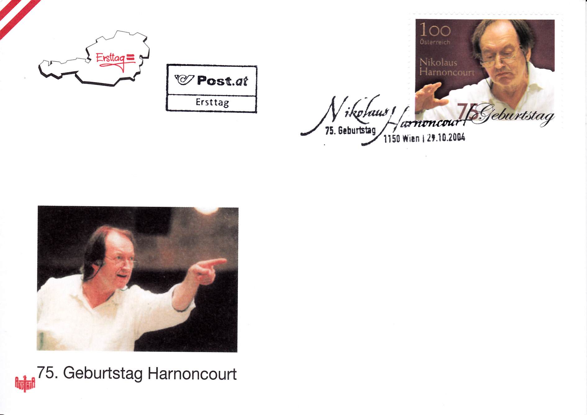 Zum 75. Geburtstag von Nikolaus Harnoncourt ist in Österreich eine Marke (MiNr 2504) erschienen.