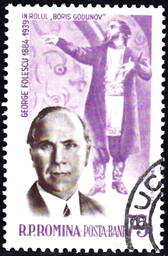 Auf einer Marke aus Rumänien (MiNr 2234) ist ein Porträt von George Folescu vor ihm in der Rolle als "Boris Godunov" (Oper von Modest Petrowitsch Mussorgski) abgebildet.