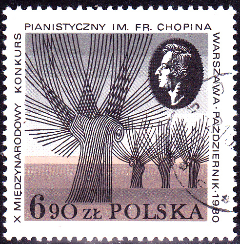 Zum Internationalen Chopin-Klavier-Wettbewerb 1980 in Warschau gab es in Polen ebenfalls wieder eine Marke (MiNr 2714). Sie zeigt stilisierte Weiden.
