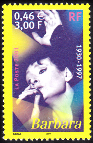 In einer Serie "Chansonsänger" ist in Frankreich auch eine Marke (MiNr 3536) mit einem Porträt von Barbara erschienen.