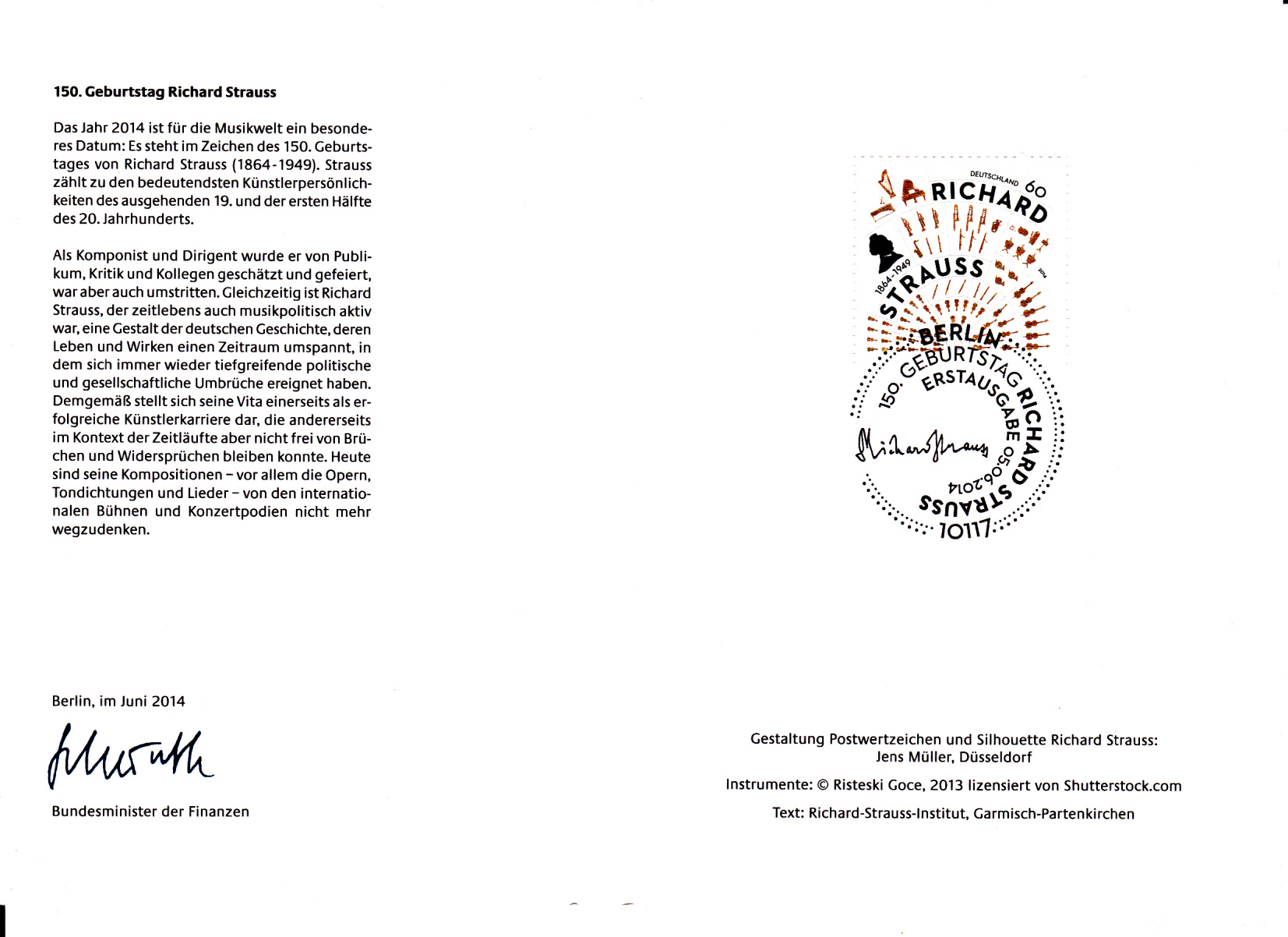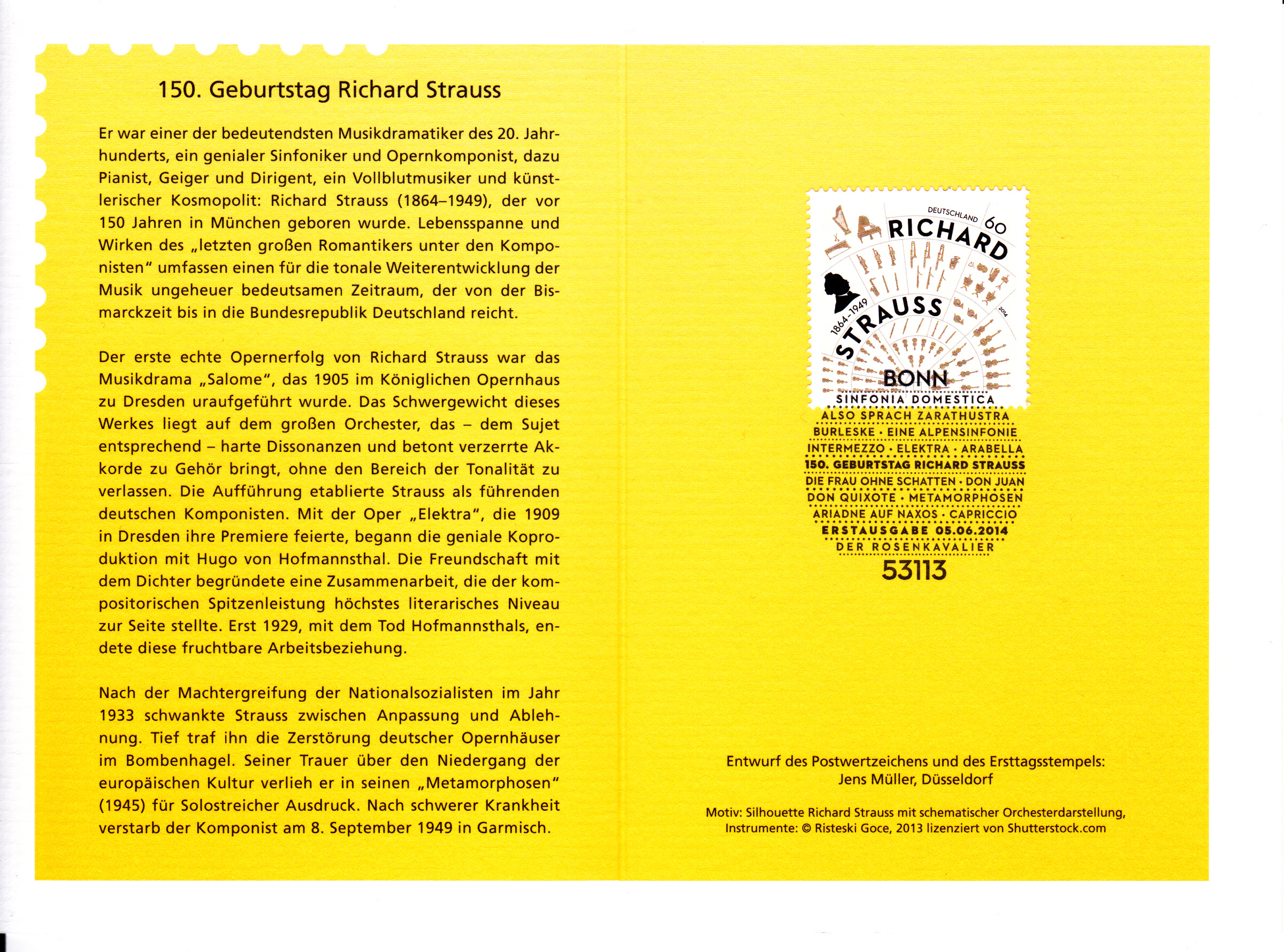In Berlin erschien am 18.9.1954 diese Marke zum 5.Todestag von Richard Strauss (MiNr 124):