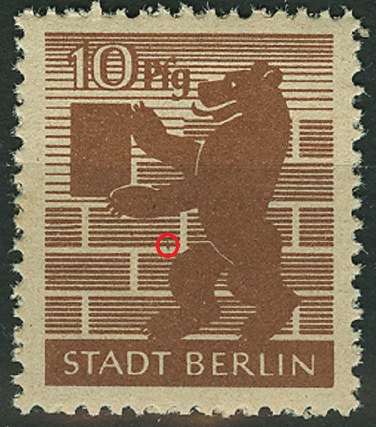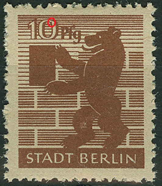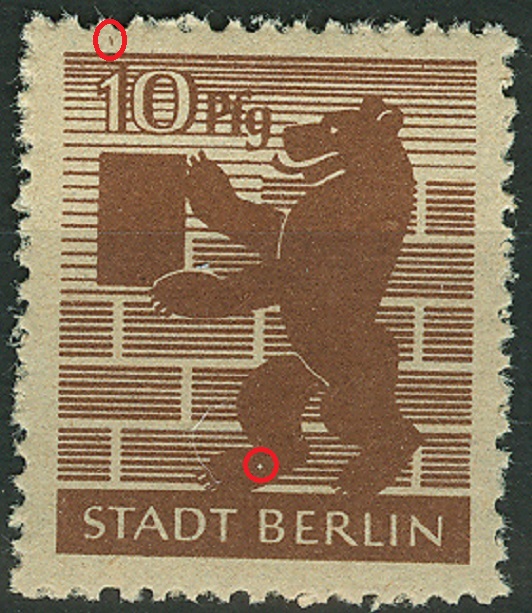 Wer sich der Freimarkenausgabe "Berliner Bär und Eiche" zuwenden möchte, wird viele Druckzufälligkeiten entdecken können und manchmal auch einen bereits anerkannten Plattenfehler.